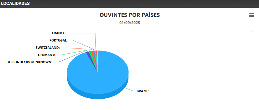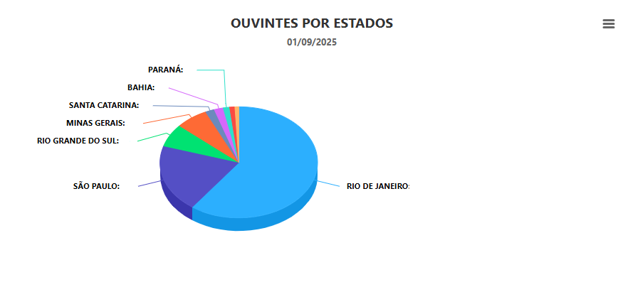 1. Nosso próprio painel — A partir dos dados internos do nosso portal, mostramos de onde vem a maior parte dos nossos ouvintes, incluindo a distribuição por países e estados do Brasil.